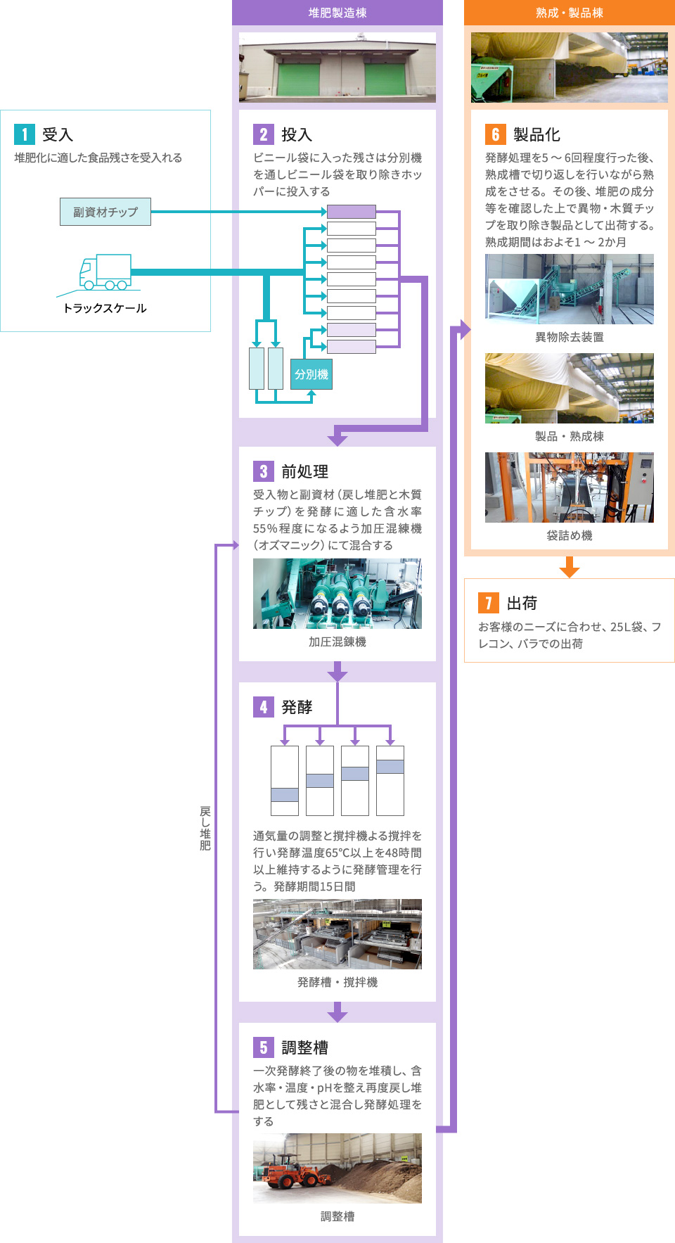 熟成・製品棟 | 堆肥製造棟で製造された堆肥の製品化(熟成・袋詰め等)を行う施設 |