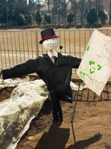 カカシも弊社のイズミちゃん堆肥の袋を持ちながら畑を優しく見守ってくれています😊