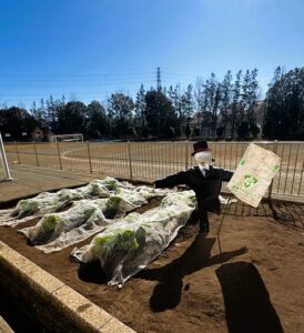 カカシも弊社のイズミちゃん堆肥の袋を持ちながら畑を優しく見守ってくれています😊