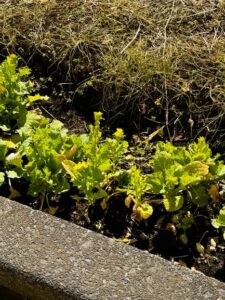 学校給食の残さから作ったイズミちゃん堆肥を使って、宮上中学校の子供たちが大切に育てている白菜がすくすく成長し、菜の花も春を迎える準備が進んでいました🌺